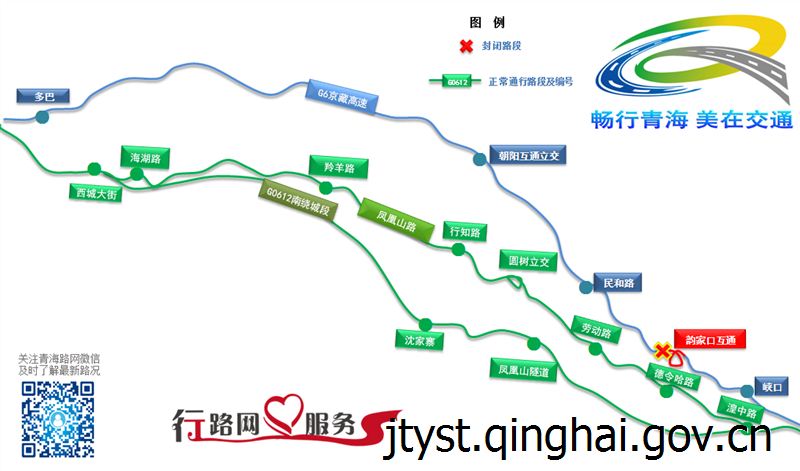 (一)海东主线收费站是连接西宁和海东市区的主要节点,如节日期间因车流量大造成拥堵,车辆可就近从峡口互通分流至国道109、民小一级公路,或从曹家堡枢纽互通绕行南绕城高速,以缓解交通压力。