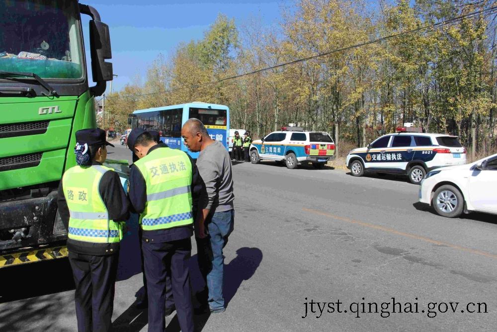 。在大通县治超办与互助县治超办的积极协调下,11月1日,支队联合大通、互助两县交管、交通运输综合行政执法、交警部门,通过采取“固定检查+流动稽查+法规宣传+思想教育”的形式,在辖区省道102线、省道104线重点路段开展“三位一体”跨区域路警联合治超执法行动,严厉打击违法超限超载运输行为。