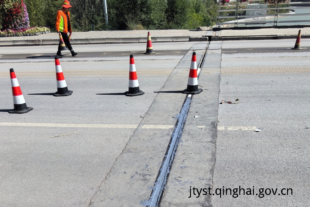 布设施工安全作业区,安排引导员进行交通疏导引流,缓解交通拥堵,保障人员车辆的通行需要。需要凿除破损的橡胶条,清理缝隙中的淤泥和杂物,并利用角磨机进行钢梁除锈,以确保伸缩缝及周边干净无杂物。填充背衬橡胶材料,均匀缓慢灌填密封胶并将表面胶料刮平,完成修复工作,施工过程方便、高效、快捷。养护人员将持续观察新材料在海西地区的适用性,提高桥梁养护的科技含量。
