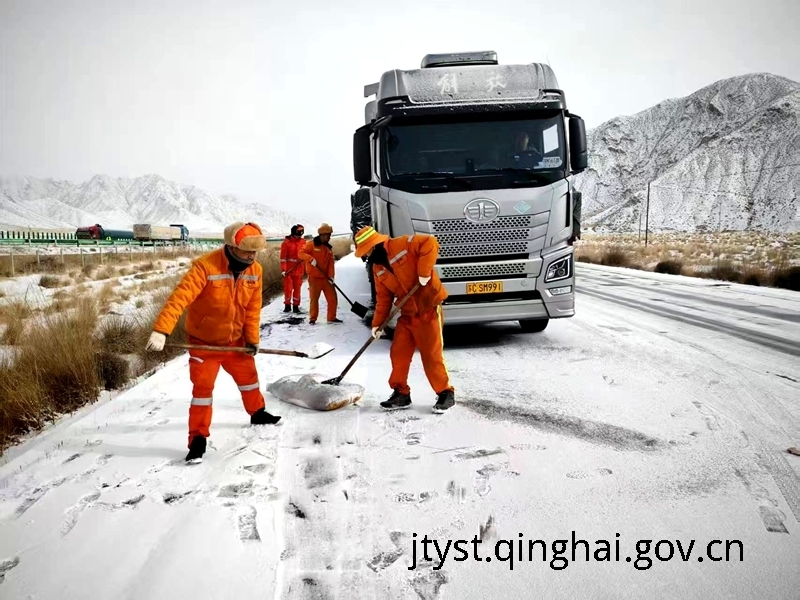 降雪致路段结冰,双向通行受阻。本次降雪影响国道109线乌兰县茶卡西至七道班(K2244+000至K2409+000)路段、国道347线(K3769+000-K3785+000)路段,其中都兰县热水乡神山附近(K2395+000)、都兰县七道班(K2407+000)两处坡道因积雪结冰,大型车辆通行难度显著增加,相关部门对该路段实施双向交通管控措施,给过往司乘人员出行带来压力。险情发生后,总段所属各单位迅速集结应急队伍,同步联动相关部门,以先抢通为主,全面展开处置工作。